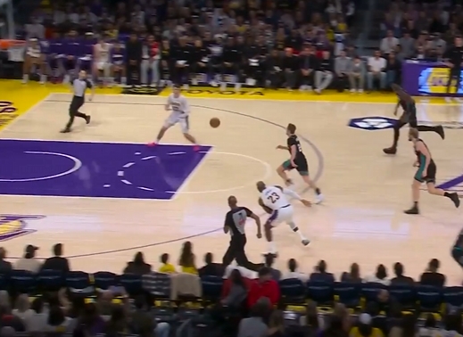 詹姆斯失衡状态下仍然送出传球,拉拉维亚双手暴力灌篮得分。本场比赛,詹姆斯已经送出3次助攻,生涯至今(常规赛+季后赛)总助攻数来到13786次,超越保罗独占历史第二位。